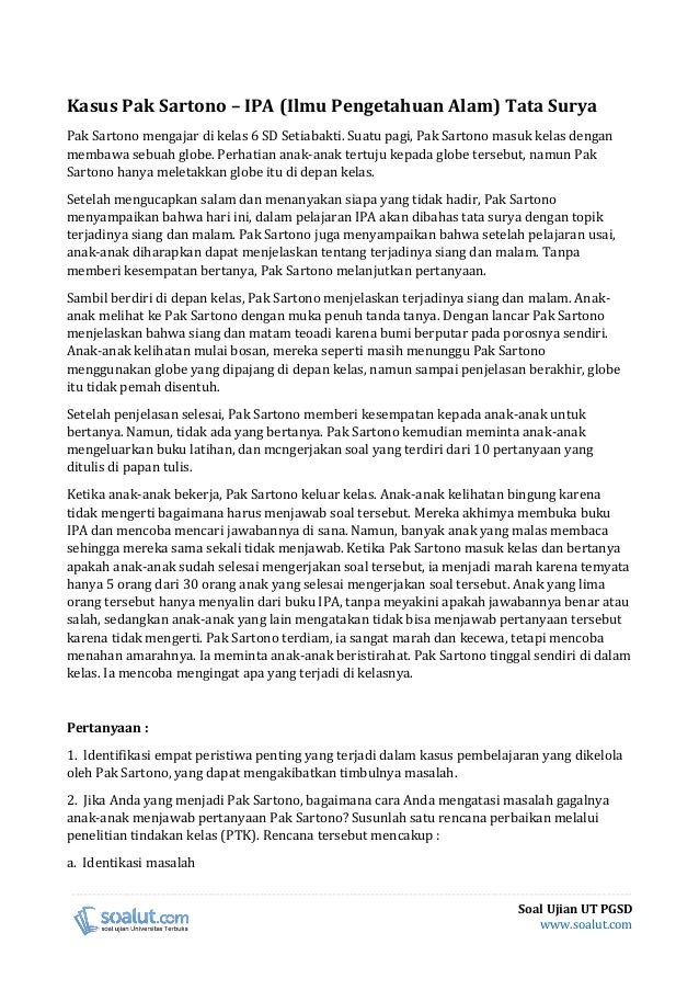 Soal Ujian UT (Universitas Terbuka) PGSD Semester 10. Download game wonder zoo versi android yang offline. Biochemical engineering journal. IDIK4012 Manajemen Berbasis Sekolah PDGK4500 Tugas Akhir Program PDGK4405 Materi dan Pembelajaran IPS SD.